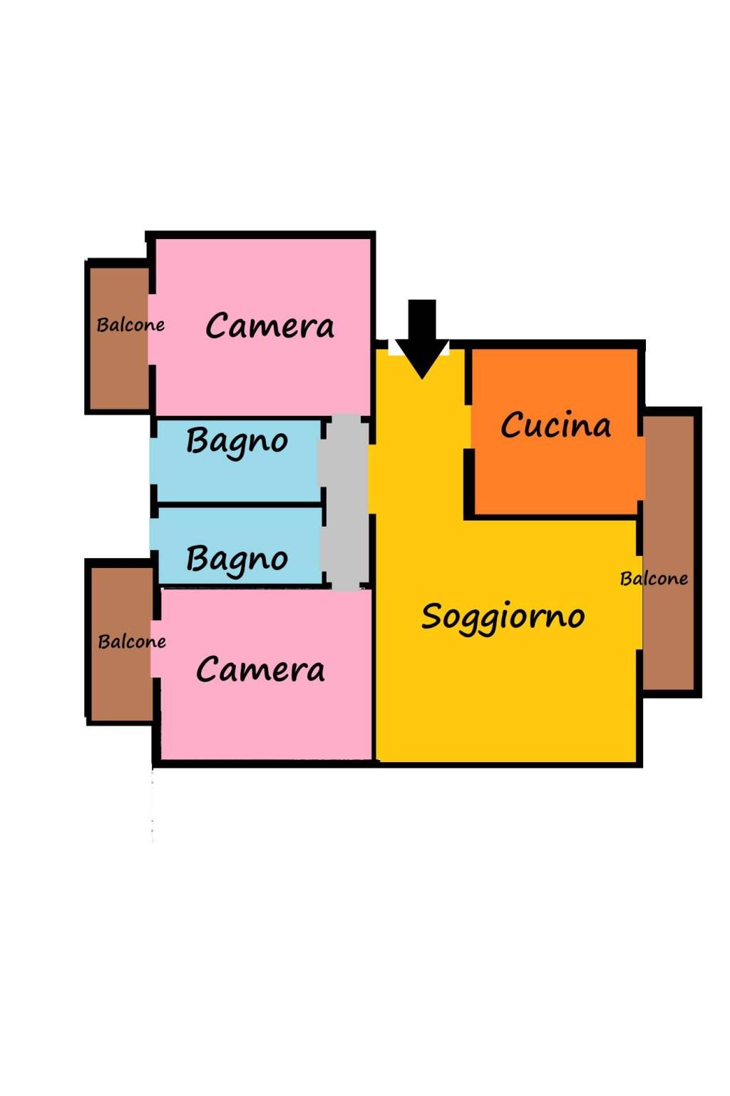 L'immobile è cosi composto e distribuito : dall'ingresso si accede ad un disimpegno che separa il soggiorno e la cucina abitabile . Gli ambienti sono serviti da un balcone con affaccio interno sul cortile condominiale.