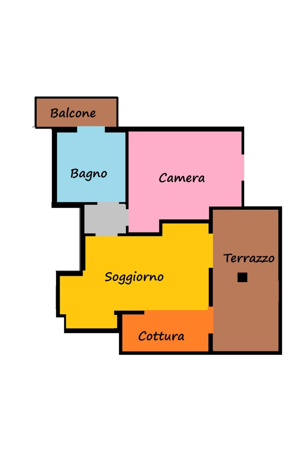 L'ingresso accede alla zona soggiorno cottura servita da un terrazzo loggiato di 15 mq che permette di essere utilizzato come metratura aggiunta nei mesi primaverili/ estivi per pranzi , cene o momenti di relax.