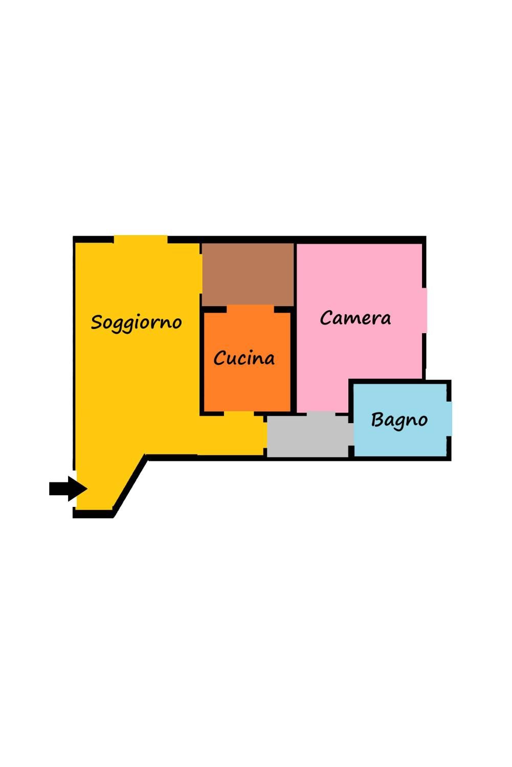 La distribuzione interna è composta da un comodo soggiorno ed una cucina abitabile serviti da un balcone ( che permette di offrire metratura aggiunta all'immobile per momenti di relax "all'aperto") . La zona notte si completa con un comodo disimpegno , una camera matrimoniale ed un bagno valorizzato con una finestra rotonda oblò .
